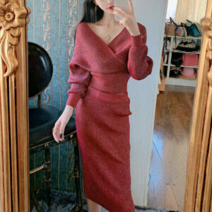 Hot Selling 4 Colors V-neck High Waist Shining Dress Set