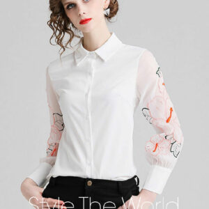 Hot Selling Flowers Embroidery Puff Sleeve Blouse