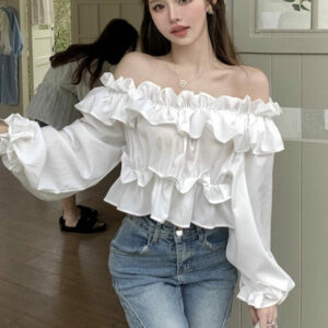 Lovely 2 Colors Boat Neck Puff Sleeve Blouse