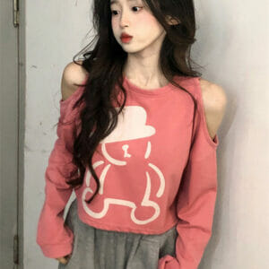 Lovely 2 Colors Off Shoulder Bear Printing T-shirt