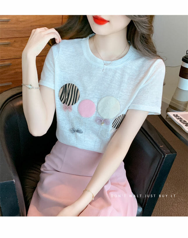 Lovely Beads Bowknots Cotton T-shirts