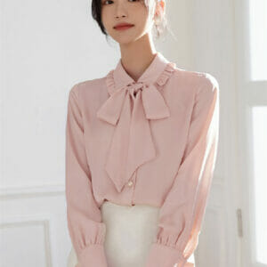 Lovely Bowknot Collar Puff Sleeve Blouse