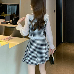 Lovely 2 Colors Flouncing Collar Plaids Dress Set