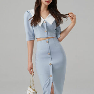 Modern Lady Doll Collar Single-breasted Slim Dress Set