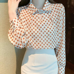 Modern Lady Dots Printings Doll Collar Long Sleeve Blouse