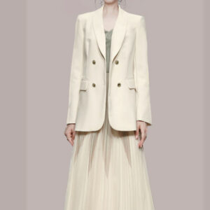 Modern Lady Double-breasted Jacket with Gauze Pleated Straps Dress