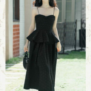Modern Lady Flouncing Camisole with Jacquard Long Skirt