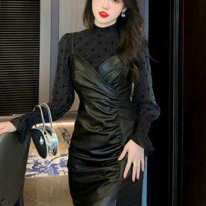 Modern Lady Gauze Blouse with Pleated Leather Straps Dress