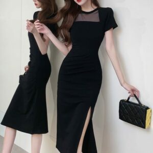 Modern Lady Gauze Bust High Waist Split Slim Dress