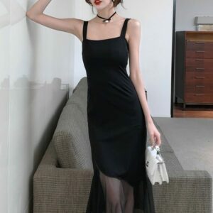 Modern Lady Gauze Fishtail Straps Backless Slim Dress