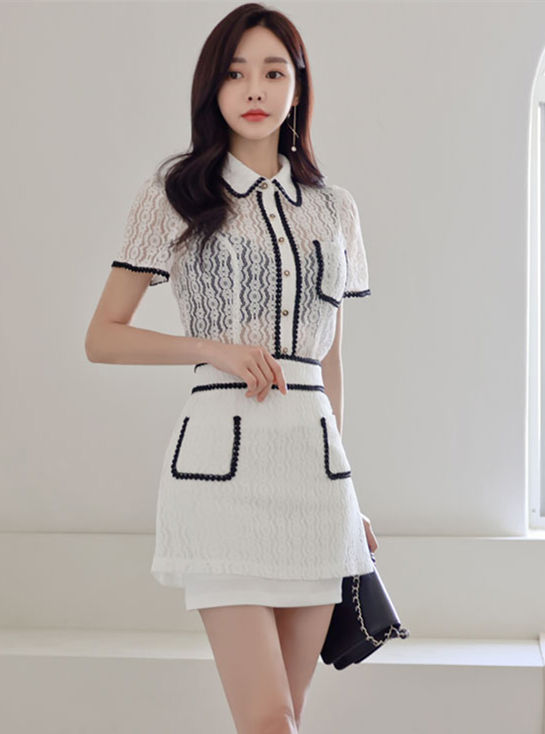 Modern Lady Flouncing High Waist Shirt Collar Dress Set